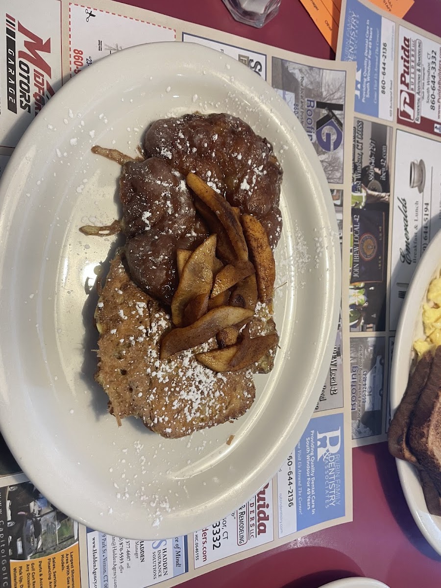 Good food and very friendly service. I had the daily special omelette with turkey bacon, feta cheese and spinach. It was good but the turkey bacon was a bit hard and chewy. The potatoes looked weird but they were tasty. Loved the apple fritter, very yummy. My friend had the Spanish omelette and a side of a pancake. He said the omelette was good but the pancake was not that great. My other friend had the Monte Cristo sandwich and loved it. Overall a good breakfast place but nothing too special.